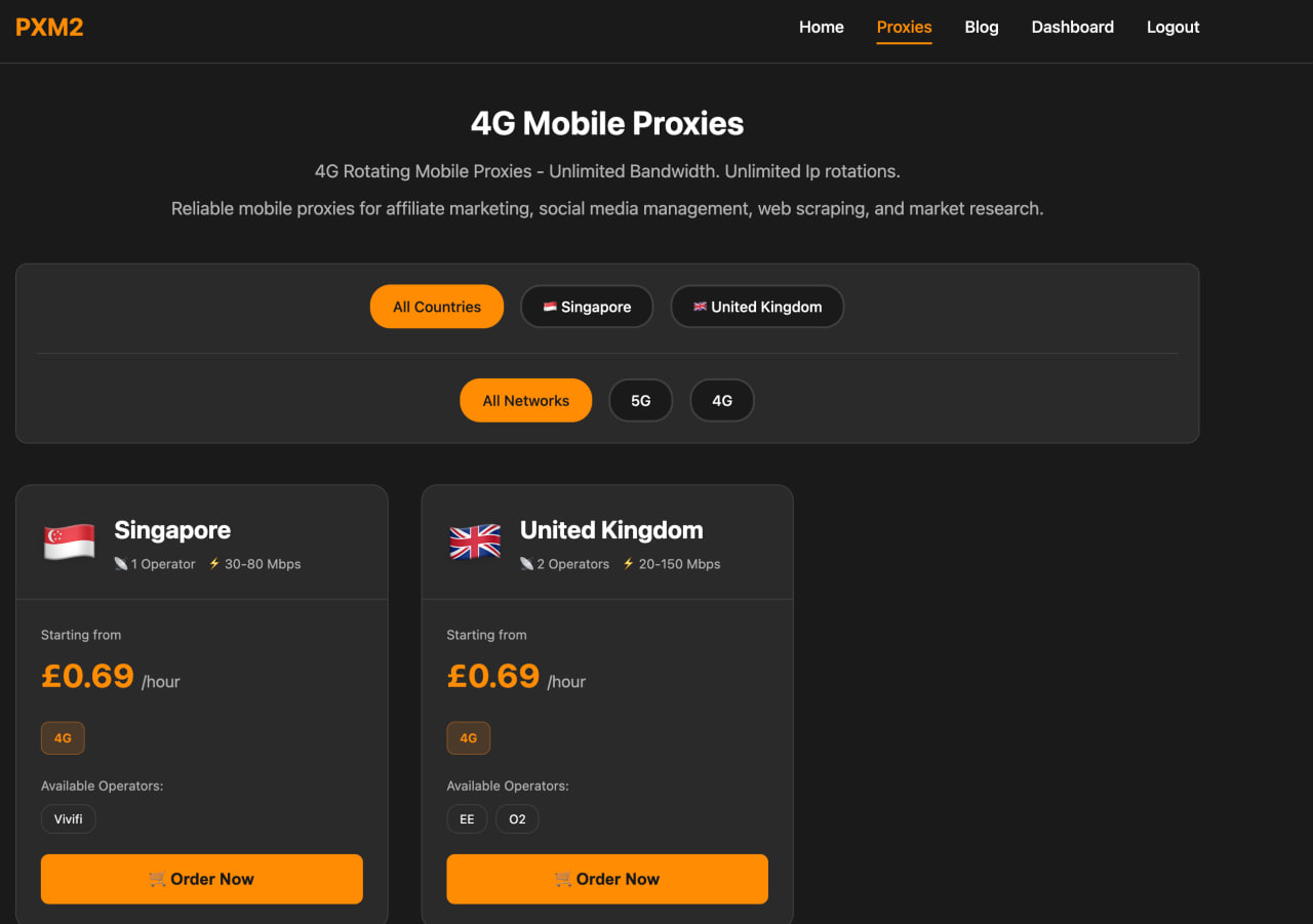 That’s where PXM2 Mobile 4G Proxies stand out. They are specifically designed to provide natural, reliable, and virtually unblockable access to Google Search, making them ideal for professionals who need consistent and scalable performance. Traditional datacenter proxies are fast but easily detected, while residential proxies are better but can still raise flags depending on usage patterns.